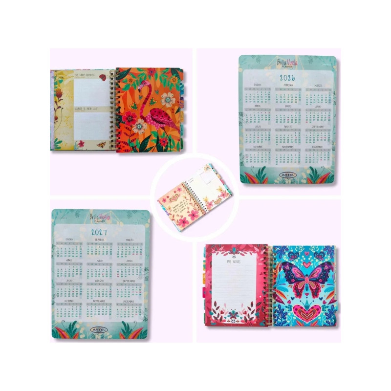 Planifica tu año 2026 con estilo y orden con el Planner de 12 meses Brilla y Vuela Deco Daniela de Artel que te acompañará cada día del año. Con un formato atractivo y práctico, presenta encuadernación en doble espiral, separadores mensuales y en formato semana a la vista, con bello motivo floral. Su cubierta de papel grueso recubierto y elástico de cierre brindan durabilidad y protección a tus páginas. Su diseño colorido aporta un toque alegre y lleno de vida, convirtiéndose en un excelente aliado para organizar tus ideas y compromisos con energía