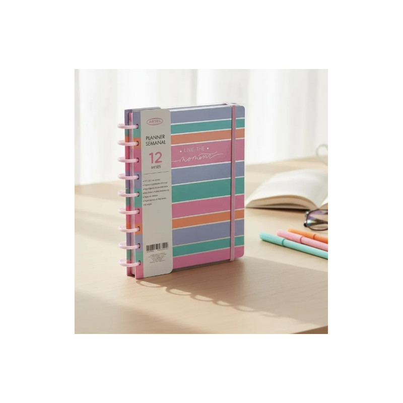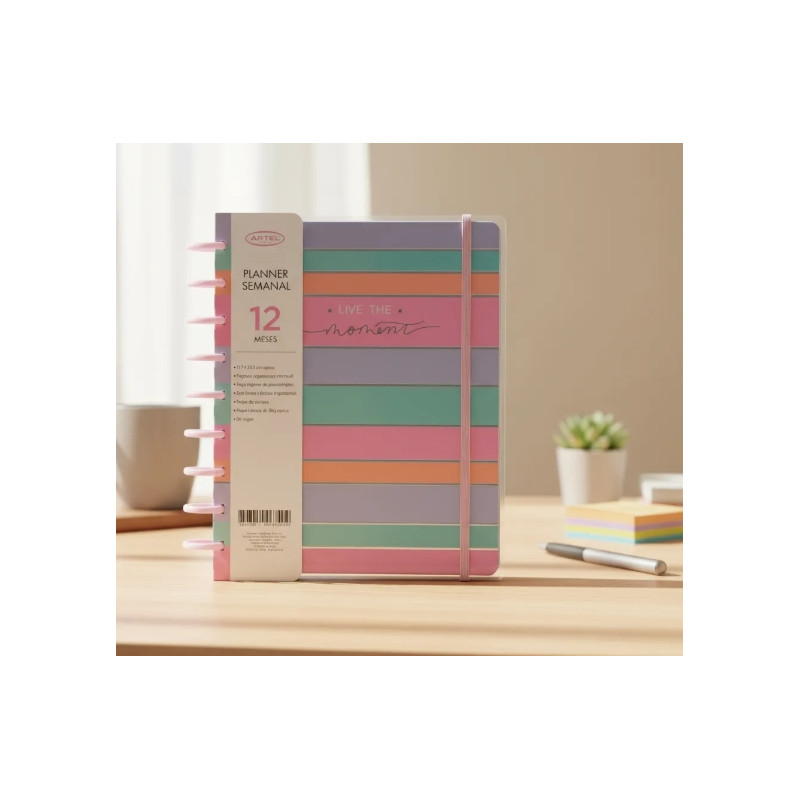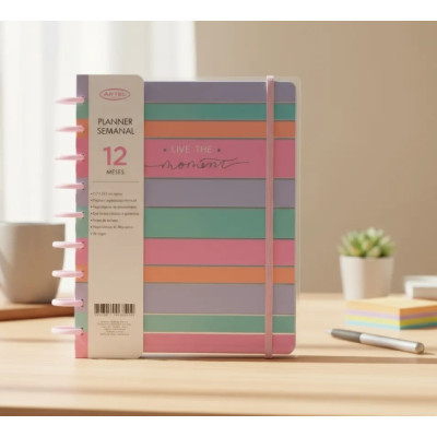 Planifica tu año 2026 con estilo y orden con el Planner de 12 meses Brilla y Vuela Deco Daniela de Artel que te acompañará cada día del año. Con un formato atractivo y práctico, presenta encuadernación en doble espiral, separadores mensuales y en formato semana a la vista, con bello motivo floral. Su cubierta de papel grueso recubierto y elástico de cierre brindan durabilidad y protección a tus páginas. Su diseño colorido aporta un toque alegre y lleno de vida, convirtiéndose en un excelente aliado para organizar tus ideas y compromisos con energía