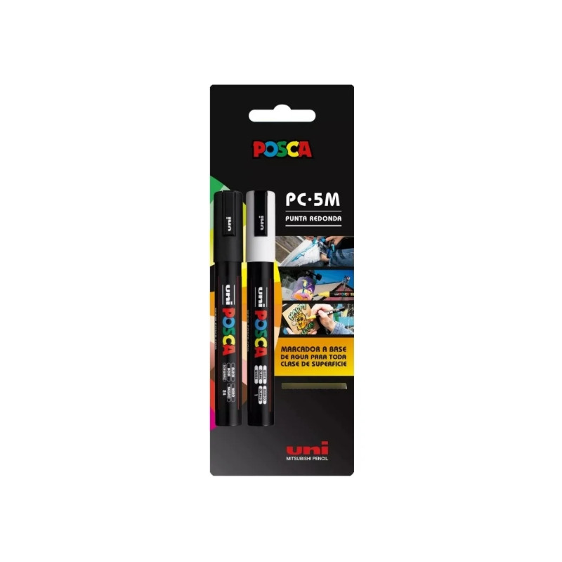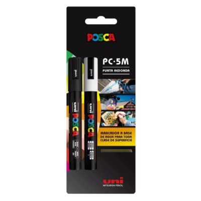 Los marcadores Posca 5M son la herramienta ideal para artistas, estudiantes y aficionados que buscan versatilidad y calidad en sus proyectos creativos. Este set incluye dos marcadores en colores blanco y negro, perfectos para una amplia gama de superficies, desde papel y cartón hasta madera y cerámica. Su punta media de 1.8 a 2.5 mm permite trazos precisos y detallados, ideales para ilustraciones, caligrafía y manualidades.