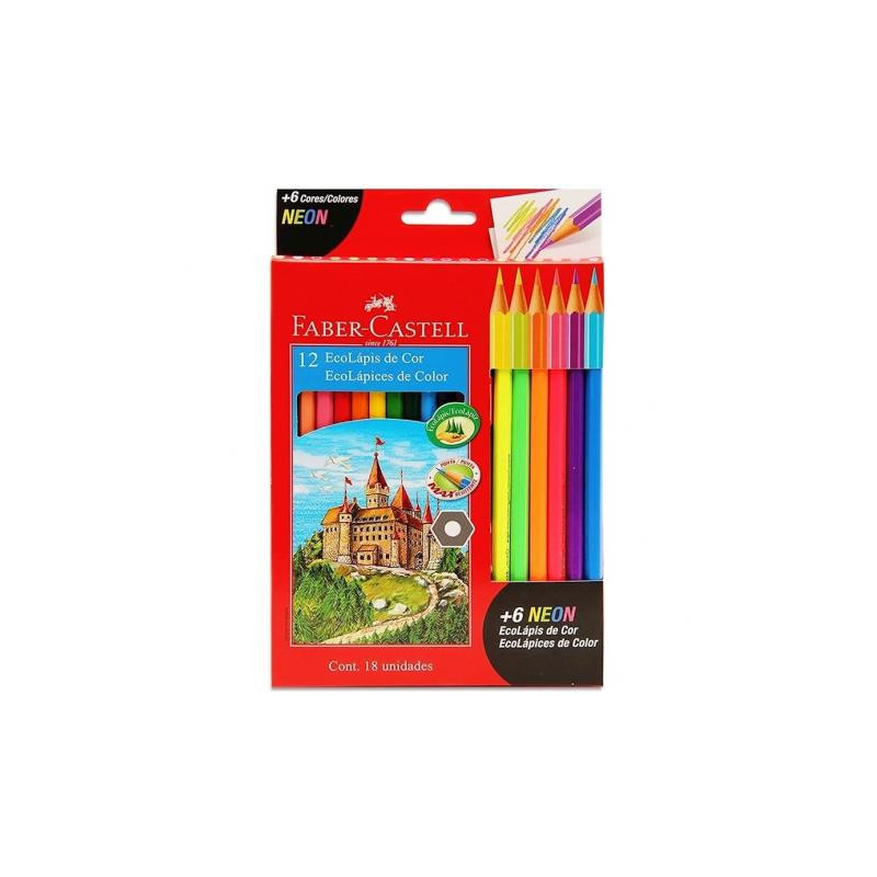 Color largo hexagonales de 12 unidades + 6 colores neón, Colores más vivos y excelente cobertura, sobre papeles claros y oscuros, Los lápices de colores clásicos han sido fabricados utilizando exclusivamente pigmentos de alta calidad, La madera de los EcoLáices proviene de bosques sostenibles, Lápices de color permanentes en tamaño estándar y forma hexagonal. Vívidos colores y un proceso de unión que los hace resistentes a quebraduras. Los lápices de color clásicos vienen disponibles en hasta 60 colores diferentes.