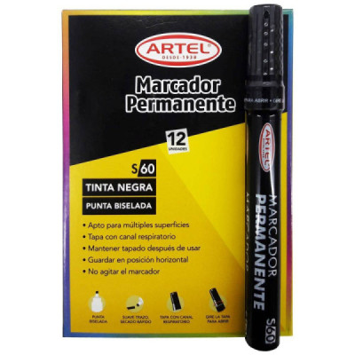 MARCADOR PERMANENTE PUNTA BISELADA NEGRO x12UNI. ARTEL