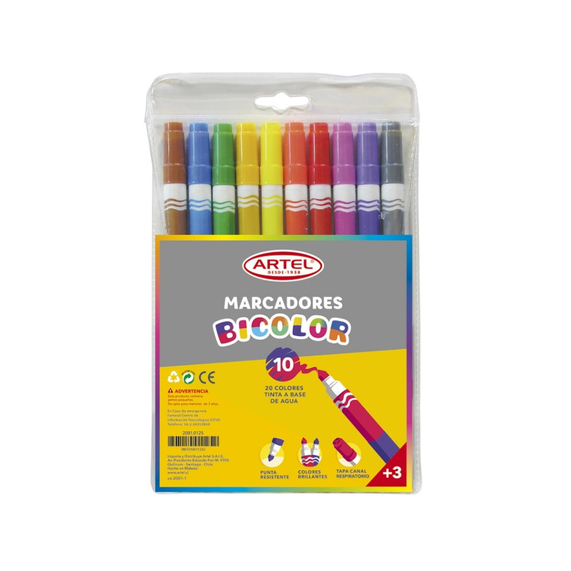 MARCADORES BICOLOR 10UNI 20 COLORES , ARTEL