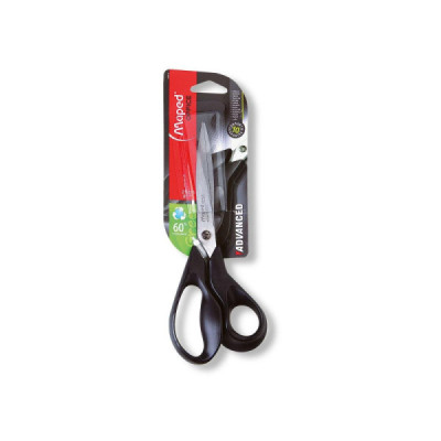 Tijera de 21 cm con hojas y remache de acero inoxidable. Los mangos tienen ergonomía 3D para un mejor agarre y están compuestos en un 60% de plástico reciclado
